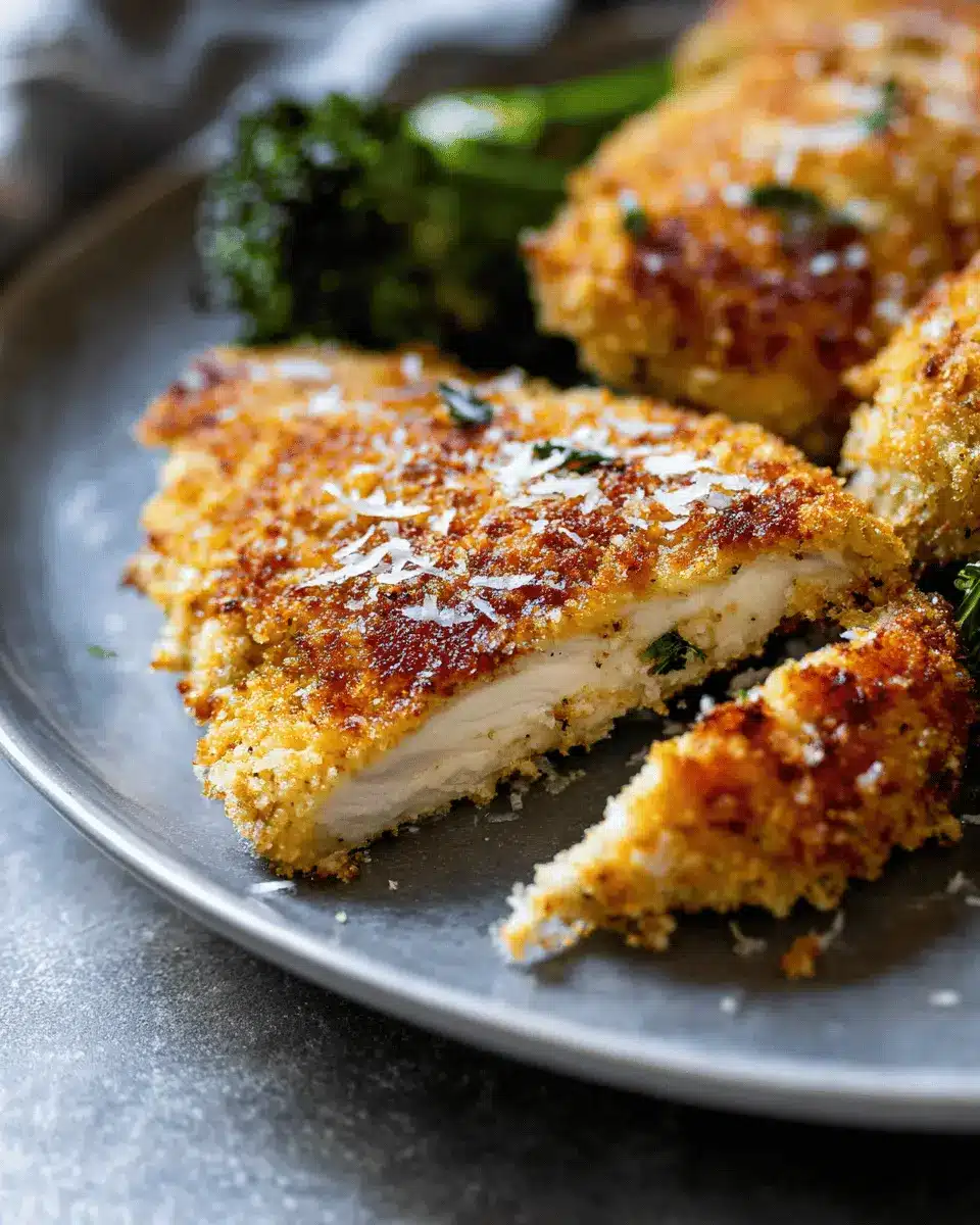 Storing your baked Parmesan crusted chicken is simple! Allow it to cool to room temperature, then transfer it to an airtight container. It can last in the refrigerator for up to 3-4 days. For longer storage, consider freezing it; just wrap it tightly and place it in a freezer-safe bag. Reheat in the oven or microwave when you’re ready to enjoy!