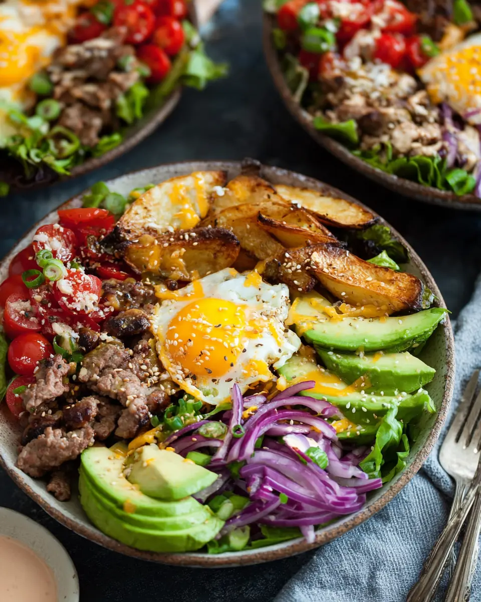 What makes these bowls even better is their versatility. You can make them any way you like by adjusting the toppings to your taste or using whatever ingredients are on hand. For more tips on creative toppings and serving suggestions, check out this article on clever meal prep ideas. So, whether you’re entertaining friends or enjoying a casual night in, burger bowls will surely bring smiles to the table!