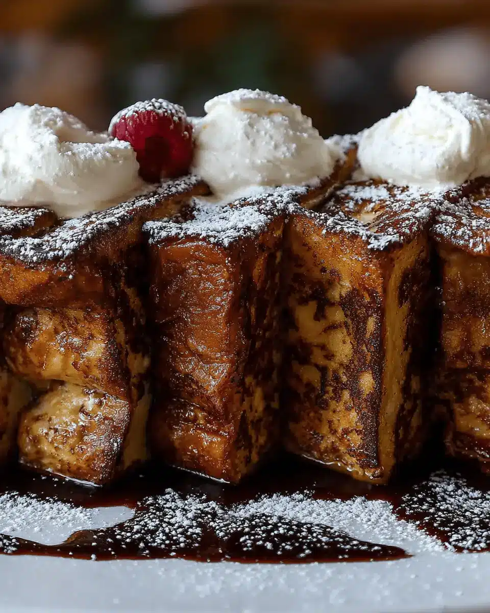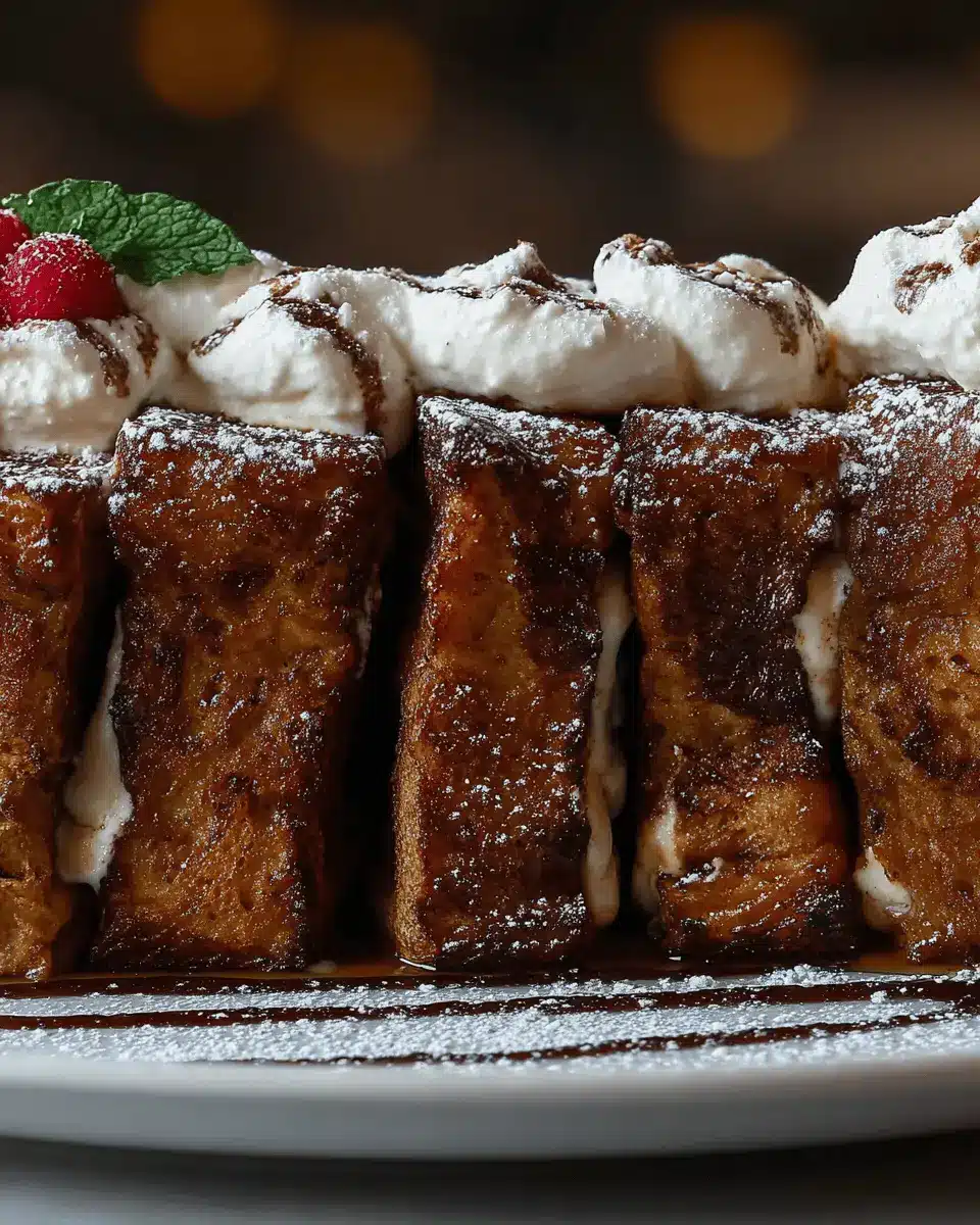 Elevate your cannoli French toast with delightful garnishes. A sprinkle of powdered sugar provides a charming presentation, while fresh berries like strawberries, blueberries, or raspberries add vibrant color and a hit of freshness. For a touch of indulgence, consider dollops of whipped cream and a drizzle of chocolate sauce or honey for that extra sweetness.