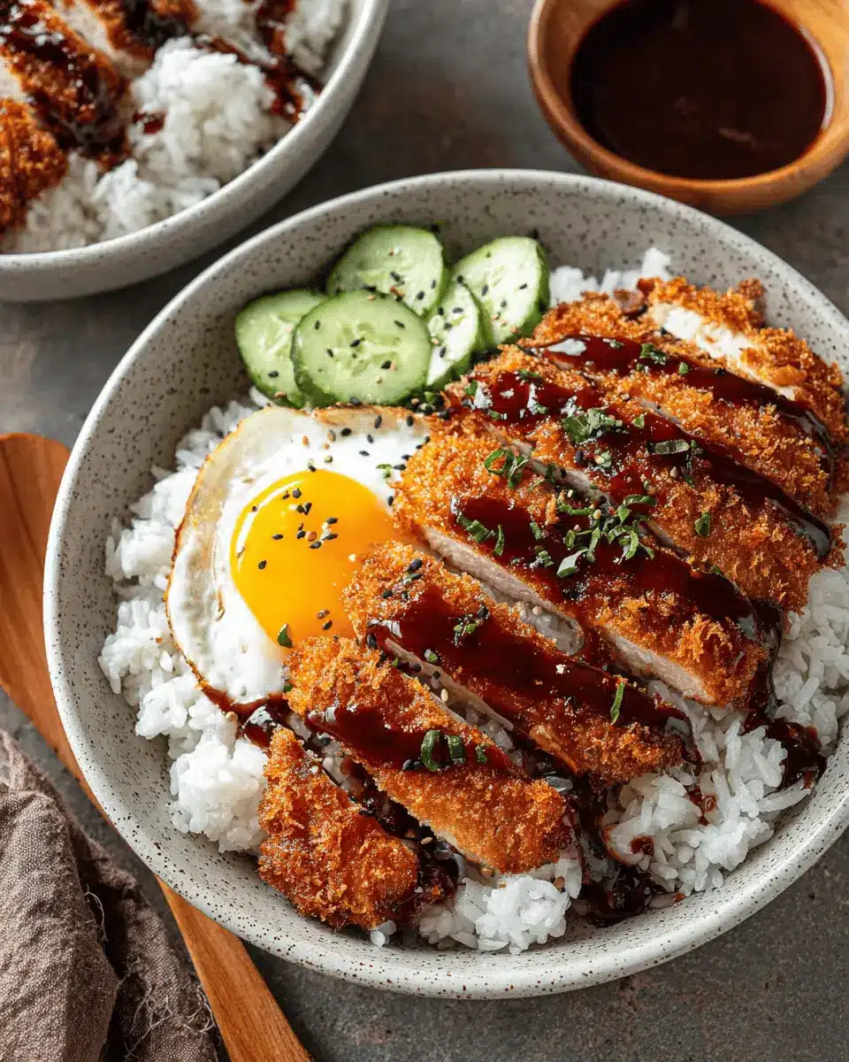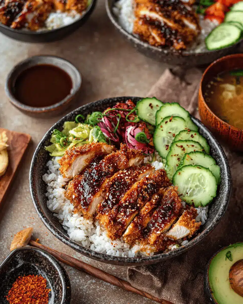 Elevate your Chicken Katsu Rice Bowls with vibrant garnishes! Fresh herbs like scallions or cilantro add a pop of color and flavor. A squeeze of lemon or lime right before serving brightens up the dish, balancing the rich tonkatsu sauce. Don’t forget a sprinkle of sesame seeds for that delightful crunch. For an extra touch, artfully arrange the avocado and cucumber slices to make the bowl visually appealing!