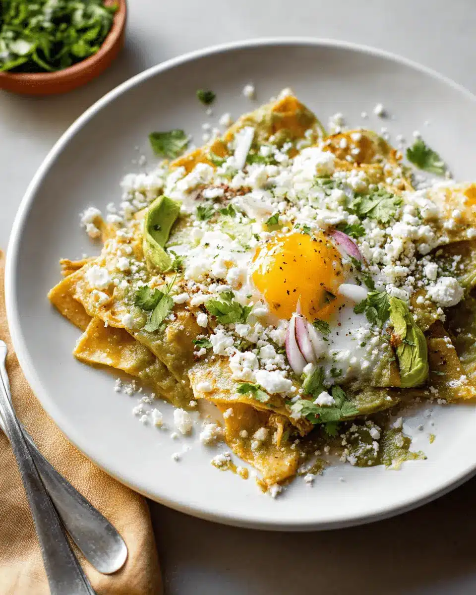 Experimenting with toppings can transform your Chilaquiles Verdes. Besides the classic garnishes like cotija cheese and cilantro, consider adding pickled jalapeños for heat or avocado slices for creaminess. You could also swap out the salsa verde for a smoky chipotle salsa to spice things up. The options are endless—get creative and tailor your dish to your taste buds!