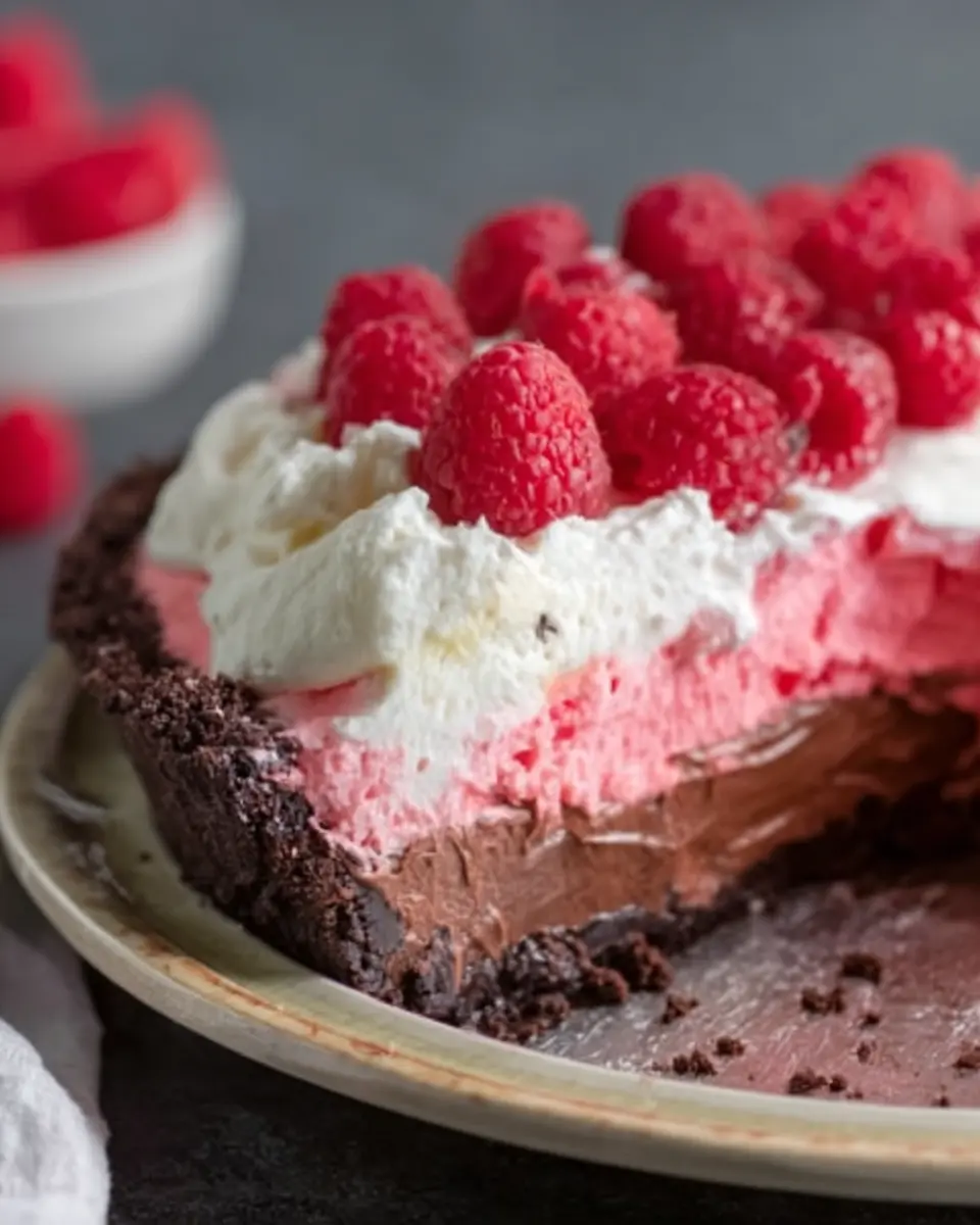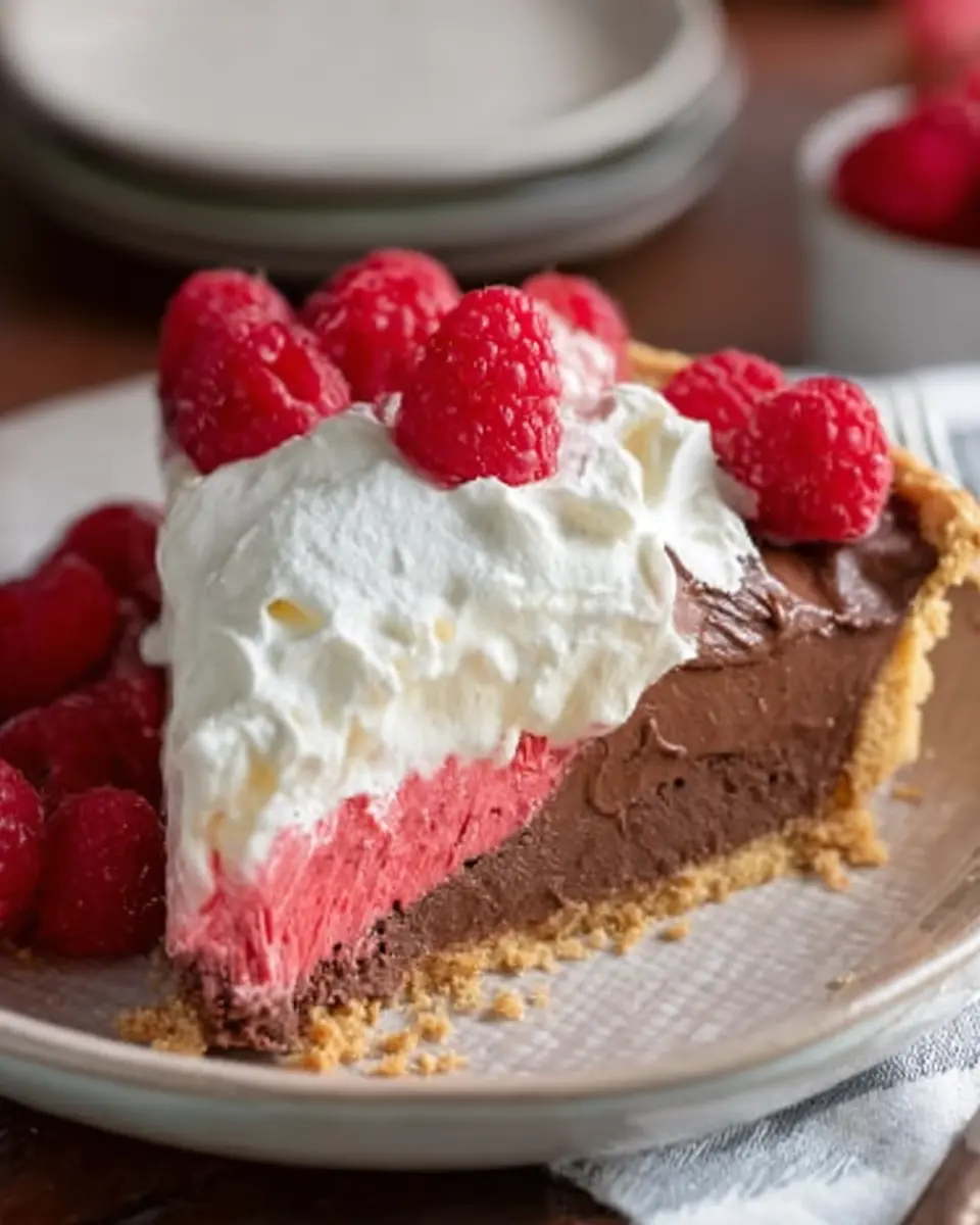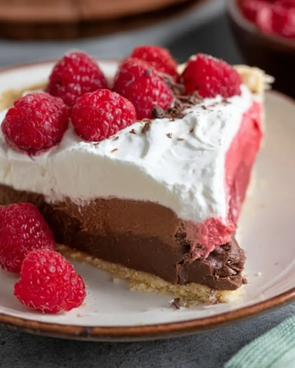 Whether you’re hosting a dinner party or simply indulging after a long day, this pie is the perfect treat. The contrast between the deep chocolate layer and the fluffy raspberry cream offers a delightful balance that everyone will love. Did you know that chocolate contains serotonin, the “feel-good” chemical? And raspberries are packed with antioxidants, making this treat not just delicious but also a tad more nutritious!