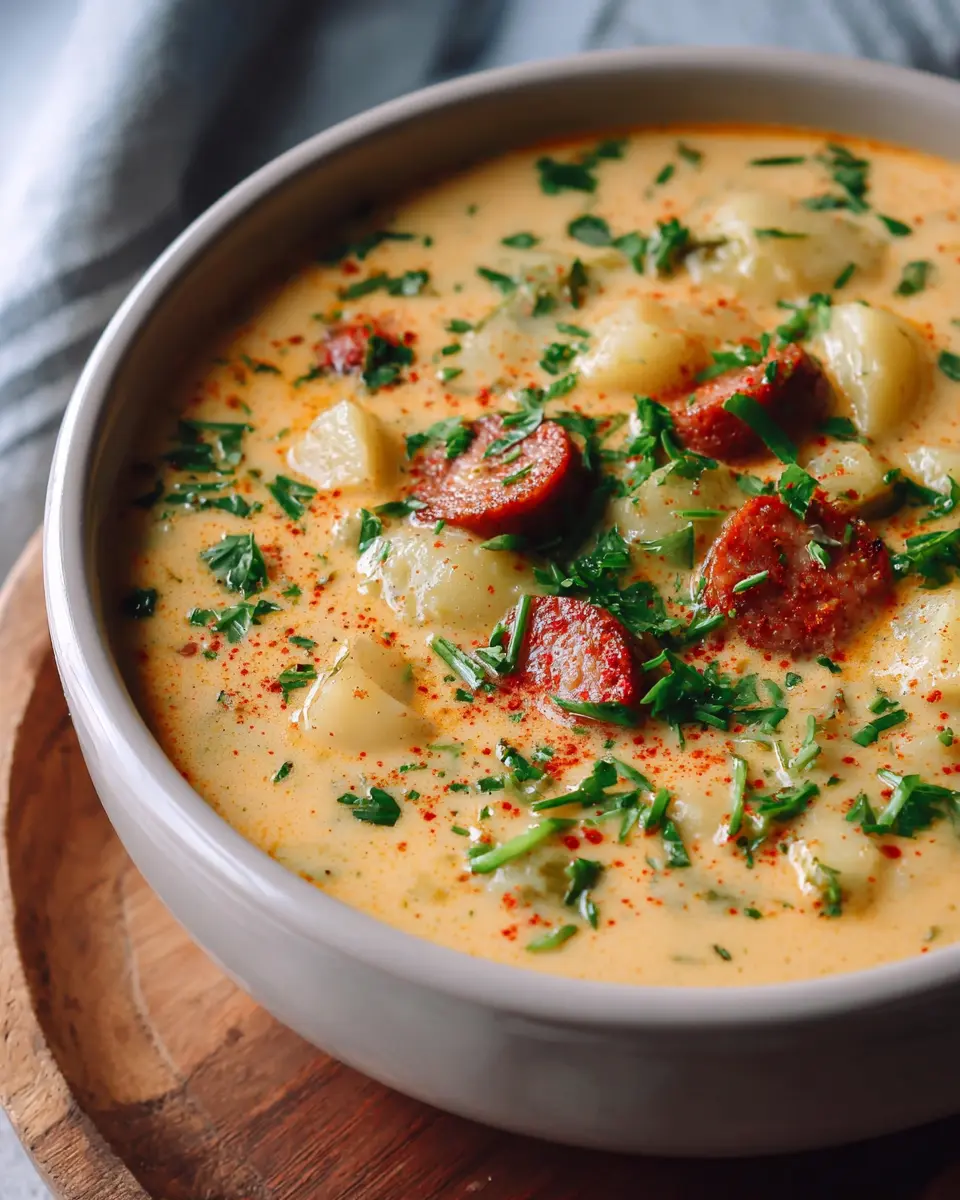 Craving a meatless option? Transform your Creamy Cajun Potato Soup by skipping the andouille sausage and using vegetable broth instead. For added protein, consider incorporating chickpeas or white beans. These not only boost the soup's heartiness but also contribute to a satisfying texture. You can infuse rich flavors with smoked paprika and extra Cajun seasoning for that delightful kick. Serve it with crusty bread for the perfect comfort meal.