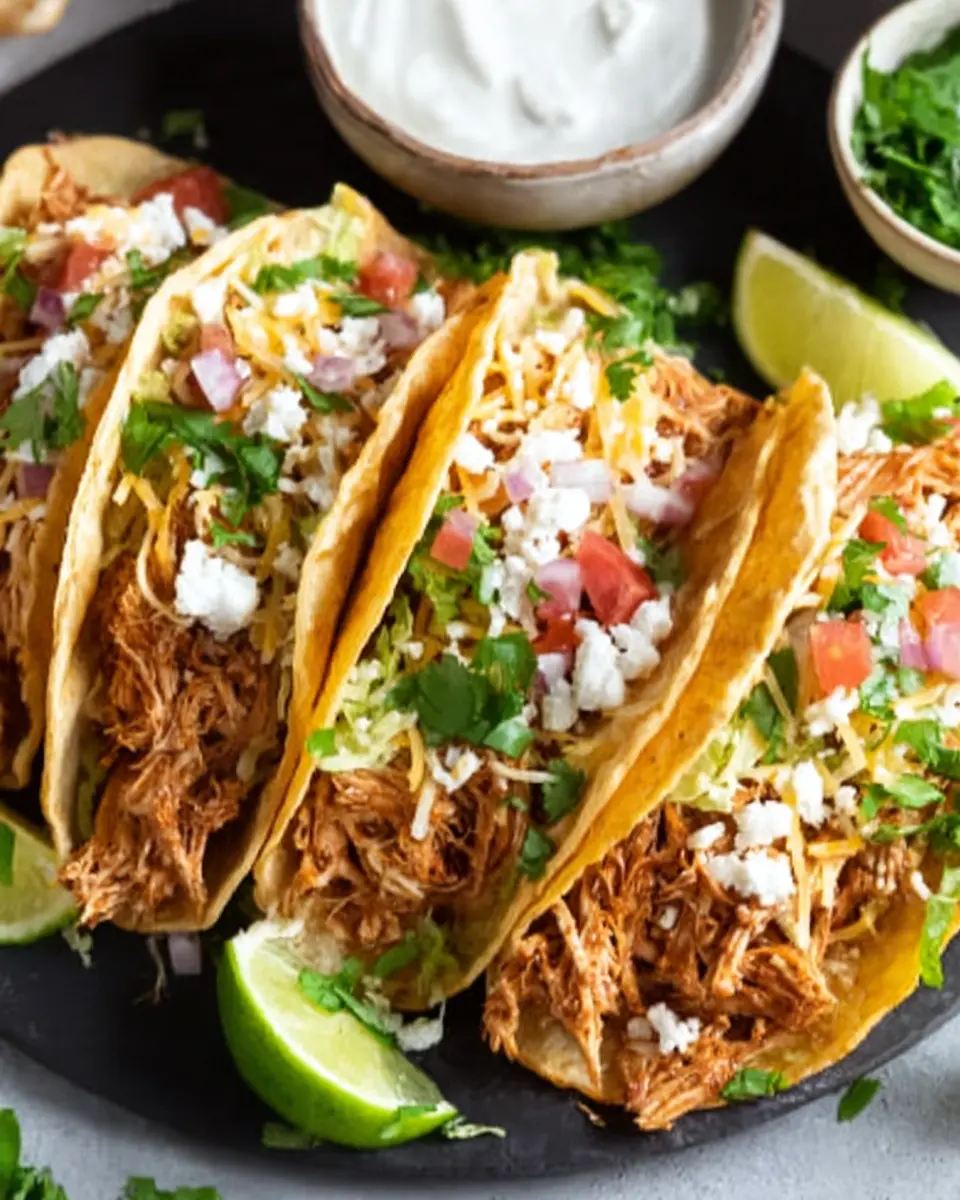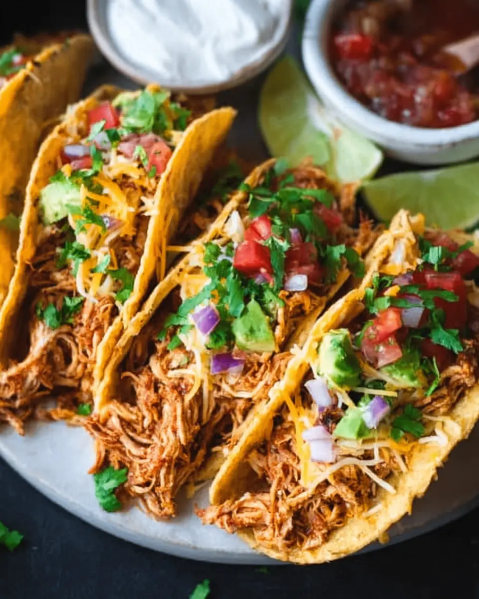 Crock-Pot Chicken Tacos are perfect for anyone juggling a packed schedule. With just 10 minutes of prep time, you can set your slow cooker and let it do the work for you. Whether you're meal prepping for the week or whipping up a quick dinner for friends, this recipe provides versatility that suits any lifestyle. Serve the shredded chicken in soft tortillas with your favorite toppings, or use it for burrito bowls, nachos, or enchiladas for added variety.