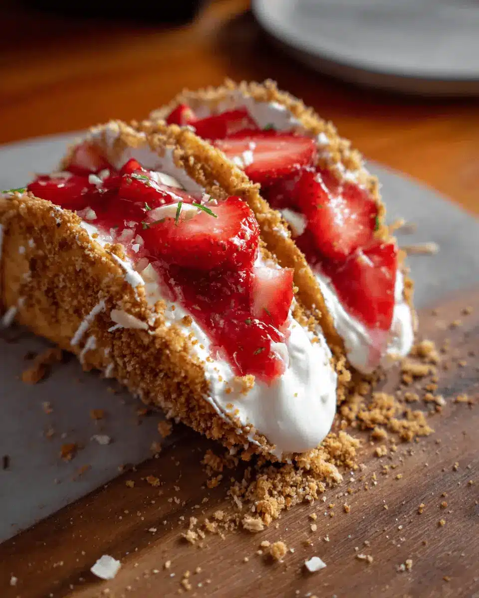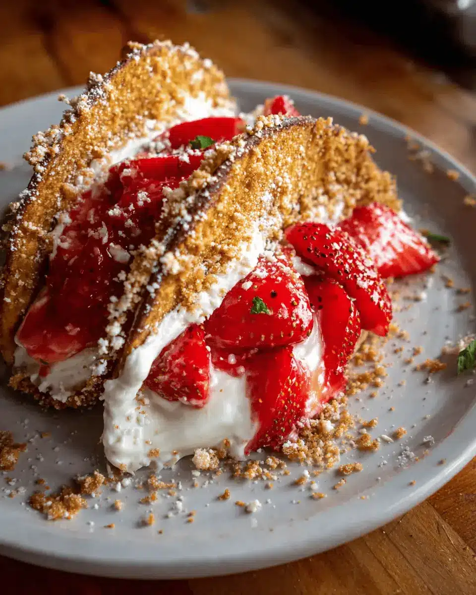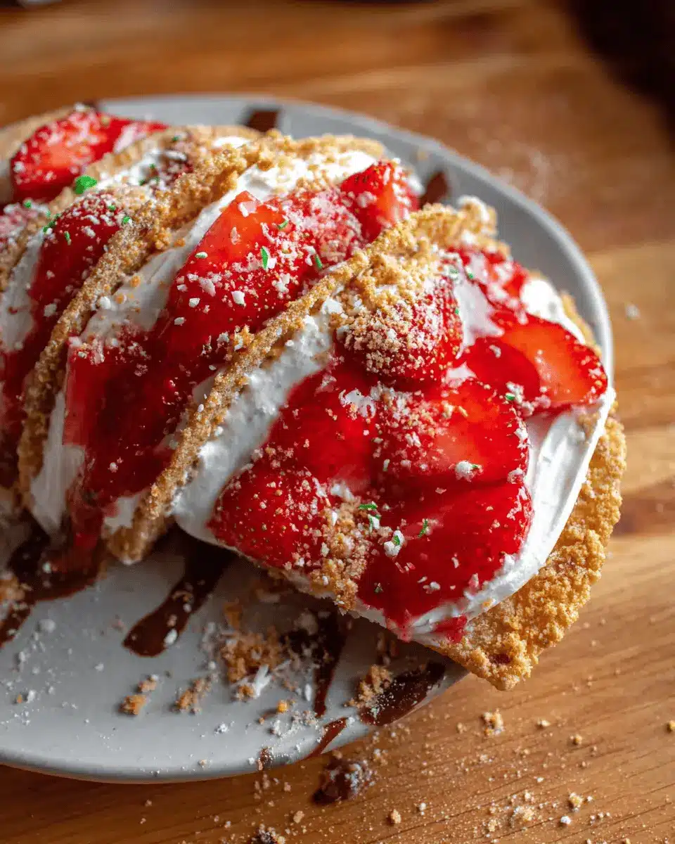 In summary, Crunchy Strawberry Cheesecake Tacos are a delightful twist on traditional desserts, perfect for impressing friends or enjoying a sweet treat by yourself. Their vibrant flavors paired with the fun taco shape make them a hit at any gathering. Try this recipe, and indulge in pure bliss!