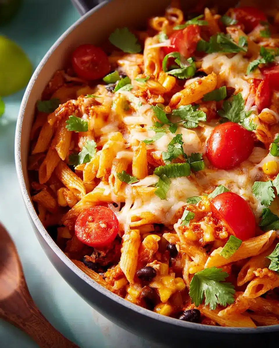 To avoid any sticking or burning, make sure to stir your enchilada pasta periodically while cooking. Using a non-stick pan can also help. And remember, if things start to look too dry, a splash of extra broth or water will keep everything beautifully saucy!