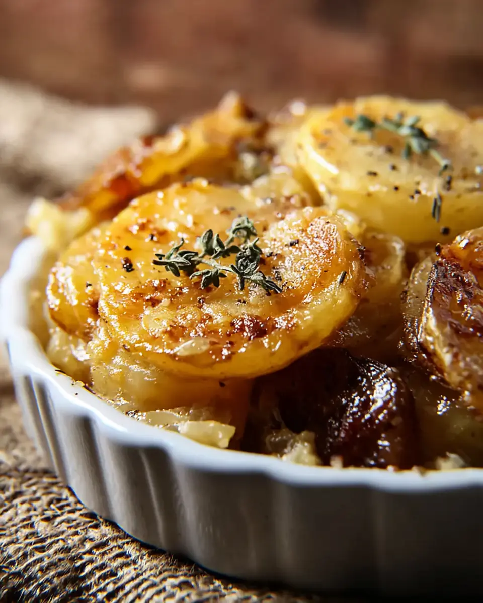 Absolutely! French Onion Potatoes can be prepared in advance, making them a perfect dish for busy weekdays or gatherings. Simply assemble the layers in your baking dish, cover it tightly with plastic wrap or foil, and refrigerate for up to 24 hours. When you’re ready to bake, let it sit at room temperature for about 30 minutes before placing it in the oven.