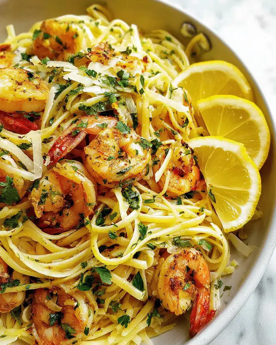 Presentation matters! For a stunning display, twirl the pasta into a nest shape on your plate, then arrange the shrimp on top. Garnish with a sprinkle of fresh parsley and a lemon wedge for a pop of color. If you're feeling adventurous, serve it in a hollowed-out lemon for an impressive and fun twist. Remember, we eat with our eyes first, so get creative—your guests will be talking about your skills long after the meal is over!