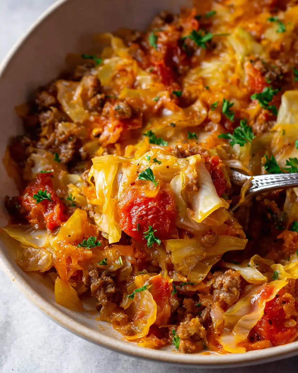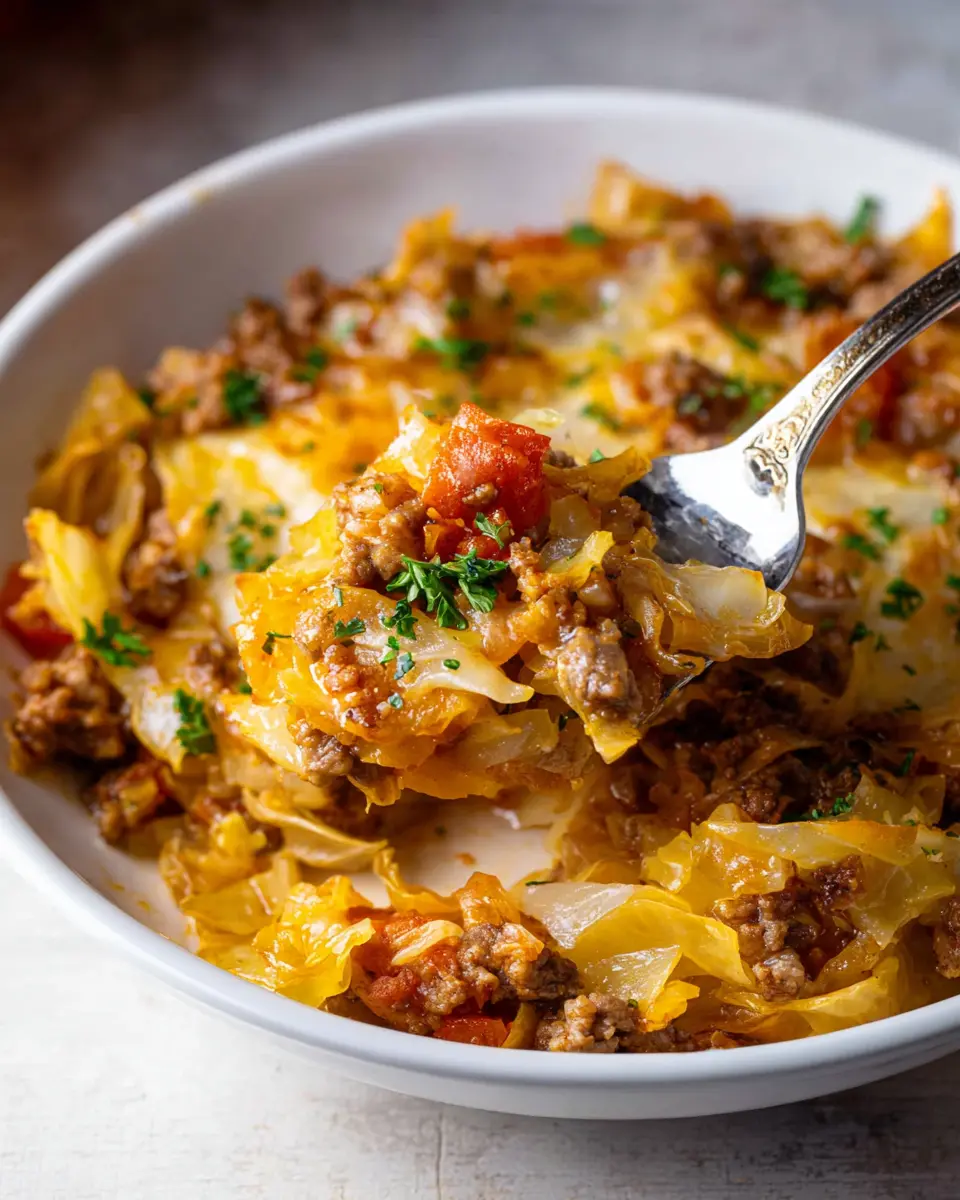 If you’re looking to switch things up, try a vegetarian version of the low carb unstuffed cabbage casserole recipe! Replace the ground beef with a mix of lentils or quinoa for added texture and protein. You can also load it up with extra veggies like mushrooms, zucchini, or even diced carrots. Drizzle with some vegetable broth to maintain moisture and flavor.