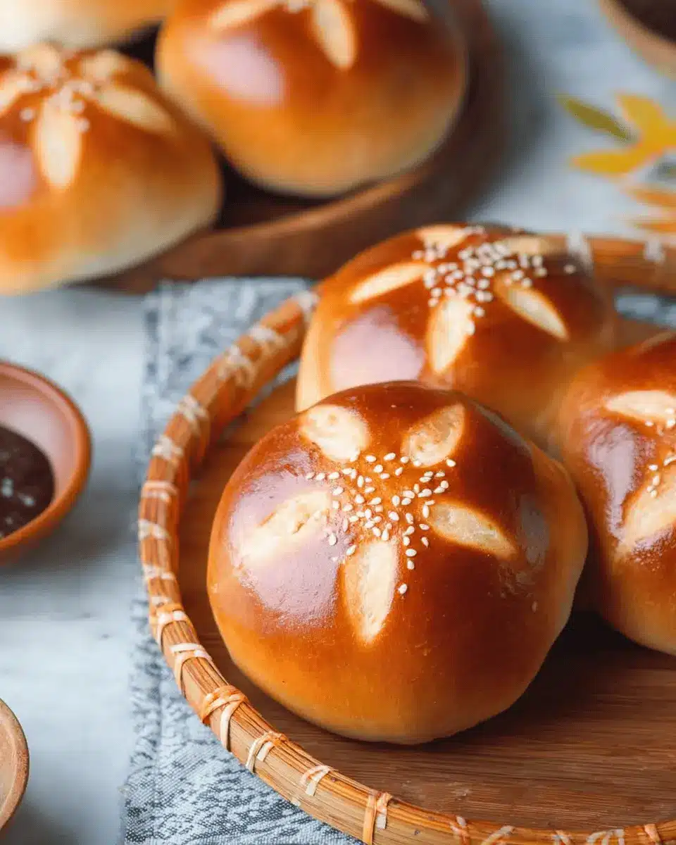 For a beautiful finish, mix an egg yolk with a tablespoon of milk for the egg wash. Brush this mixture gently over the tops of your buns, then sprinkle a few sesame seeds for added texture and flavor. Bake your red bean milk buns for approximately 20 minutes, or until they turn a gorgeous golden color. Serve them warm, and watch as everyone gathers around for a taste!