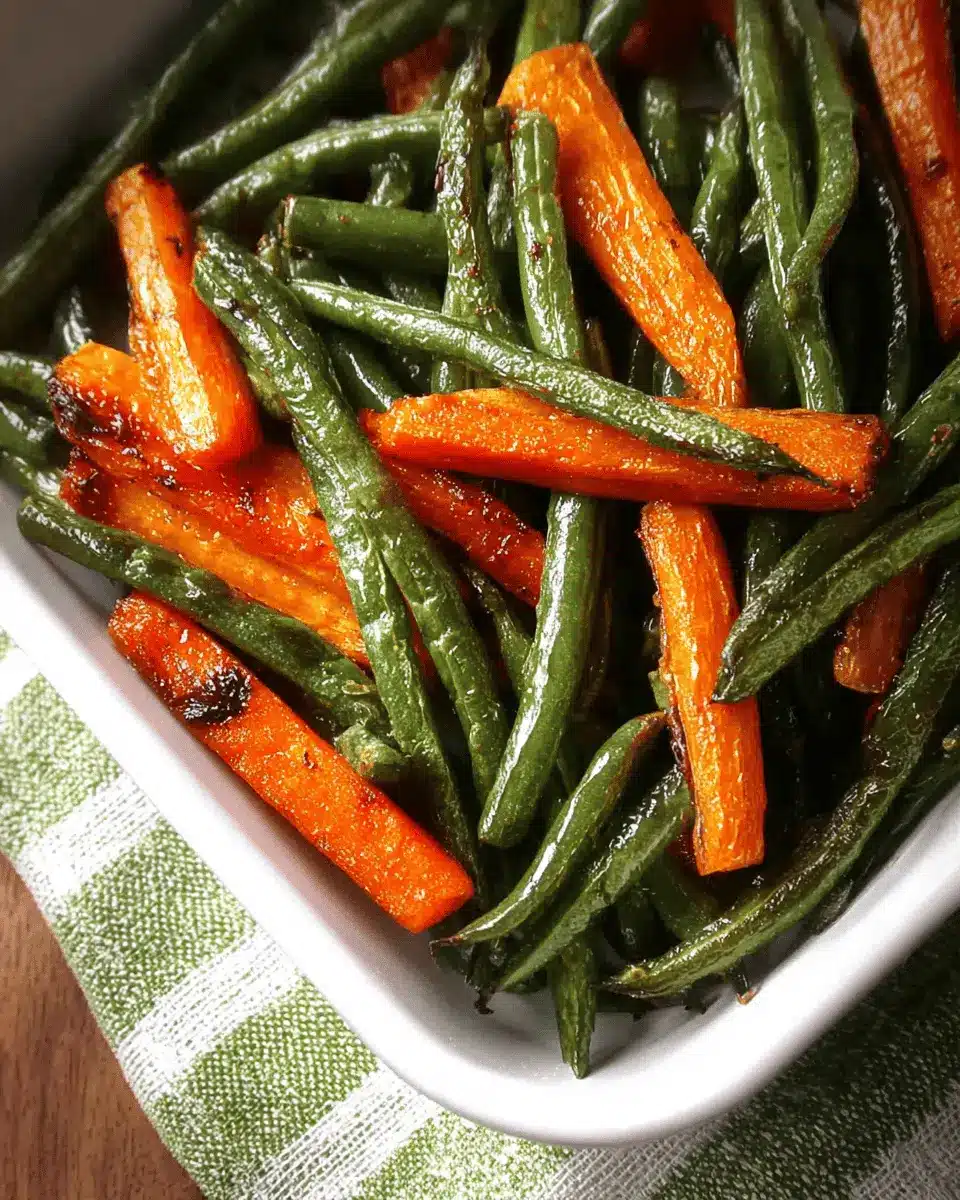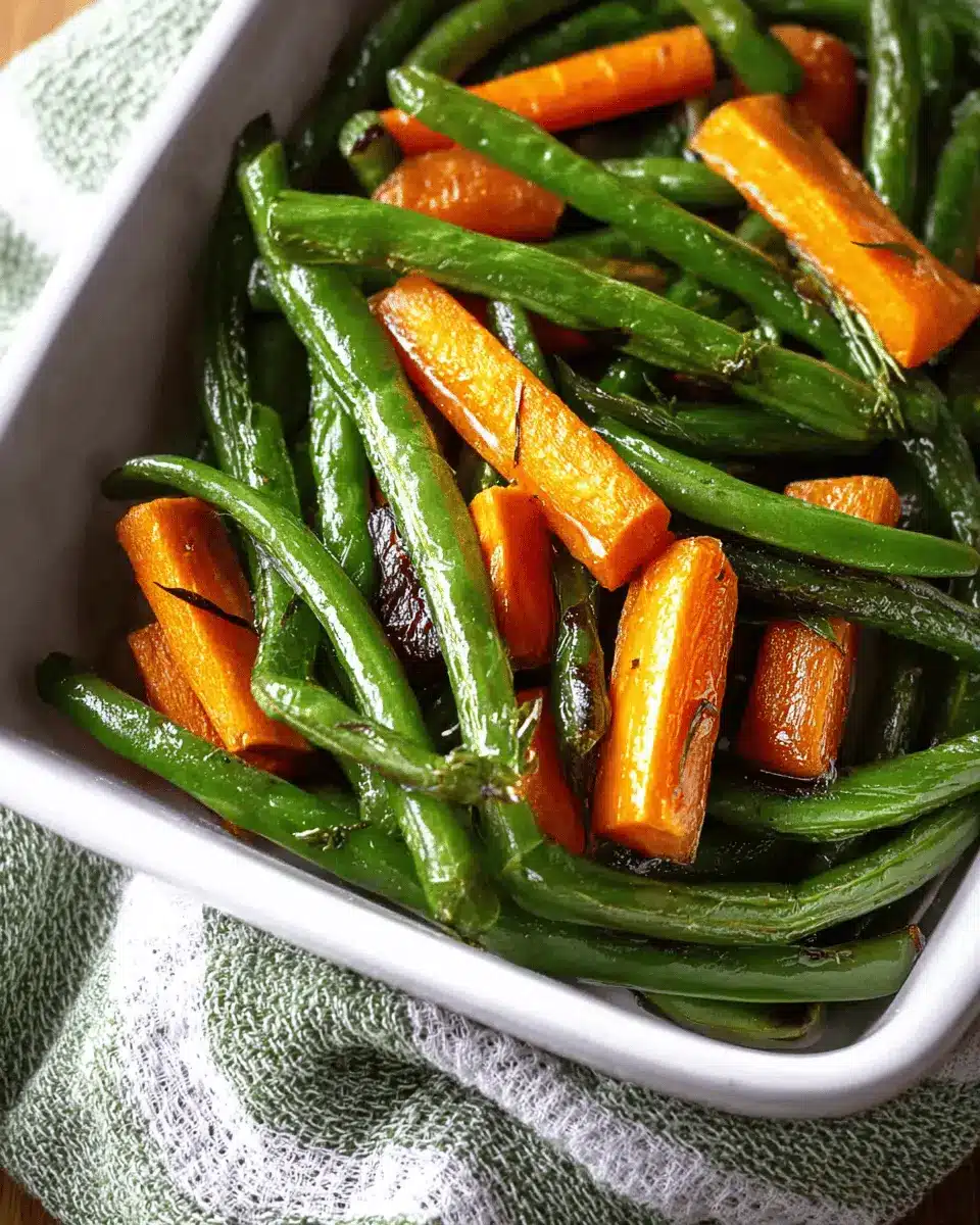 When your roasted green beans and carrots are golden and tender, take them out of the oven and let them cool for just a moment. Transfer them to a serving dish and, if you’d like, drizzle a little extra honey or a squeeze of lemon juice for added zing.