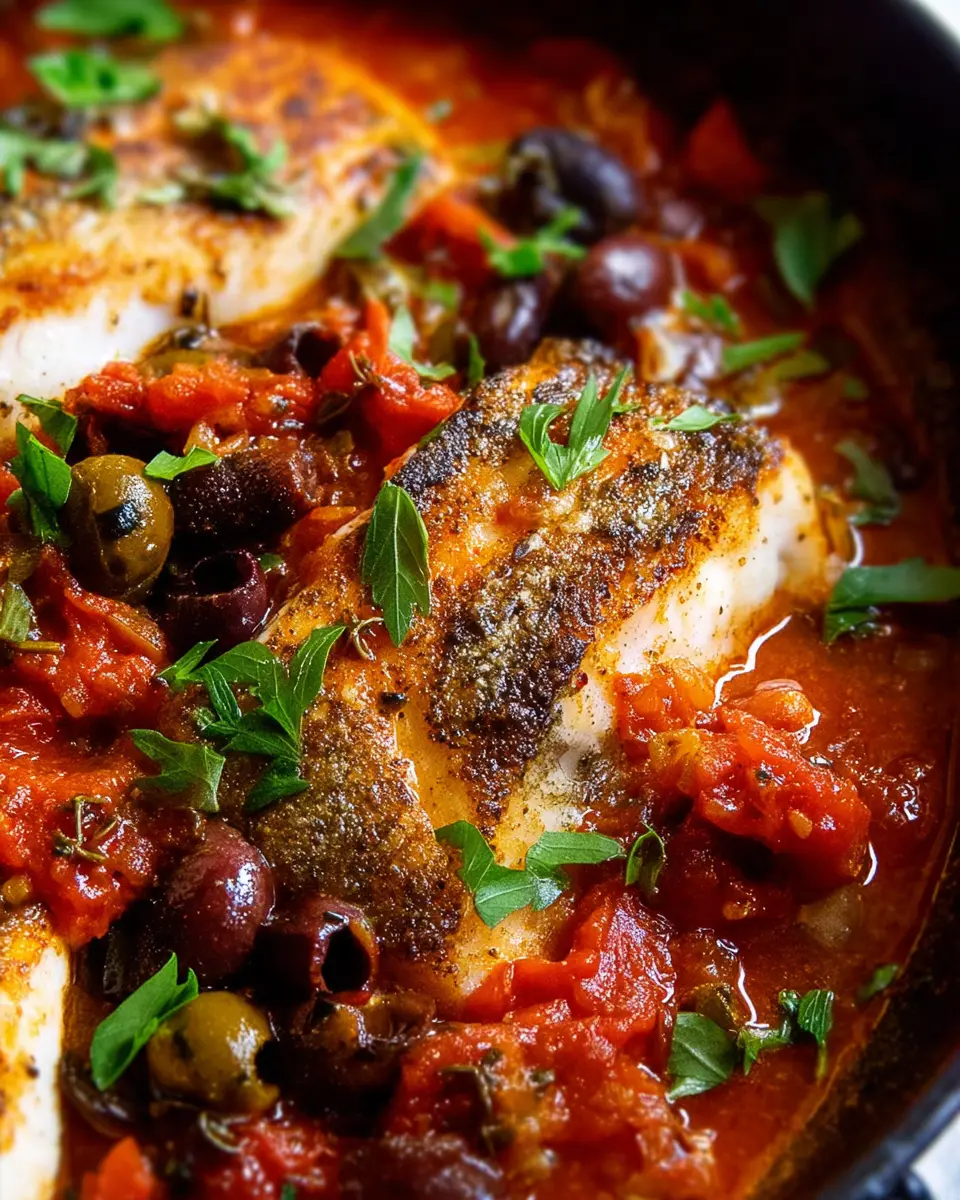 The seared fish in puttanesca sauce is a quick and wholesome meal sure to impress. Packed with rich flavors from olives, capers, and fresh basil, it embodies the essence of Italian cuisine. Give it a try for a delightful weeknight dinner that’s as satisfying as it is simple!