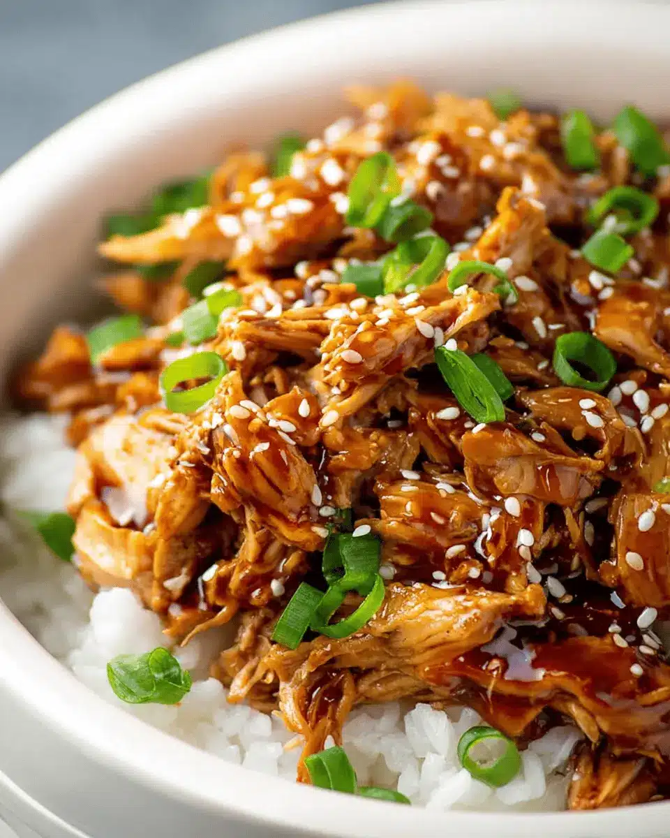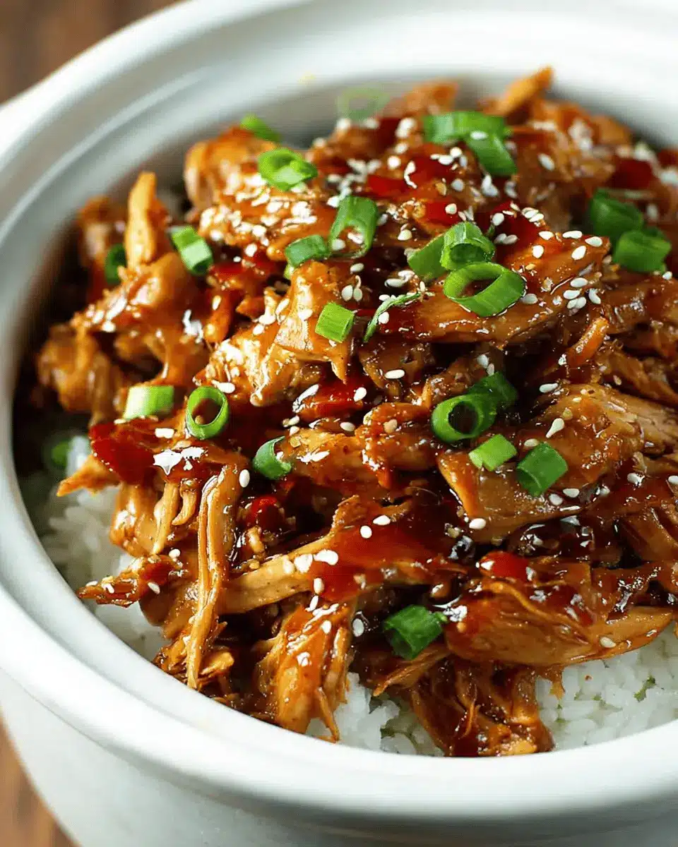 Once the chicken is cooked to perfection, it’s time to get shredding! Remove the chicken from the slow cooker and use two forks to shred it into bite-sized pieces. To elevate your sauce, pour it through a strainer into a saucepan. Bring it to a simmer on medium-high heat, then mix cornstarch with cold water to form a slurry. Add this to the simmering sauce and stir until it thickens, about 1-2 minutes.