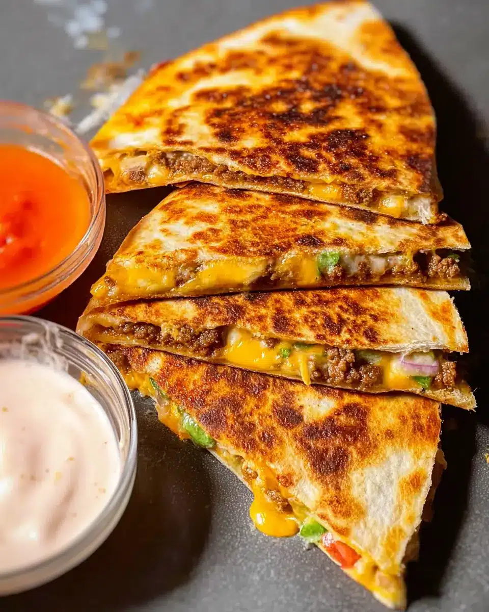 If you crave heat, a spicy take on smash burger quesadillas is the way to go. Add sliced jalapeños to the ground beef as it cooks or layer them inside the quesadilla for extra kick. For an even bolder flavor, dab a bit of your favorite hot sauce or sprinkle crushed red pepper flakes on top before serving. This fiery twist will definitely awaken your taste buds!