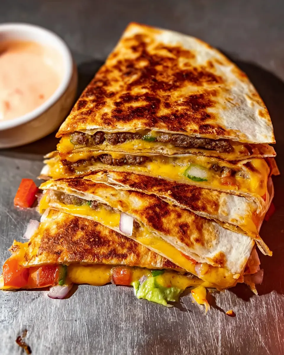 Presentation matters! To impress, slice your smash burger quesadillas into elegant triangles and arrange them on a colorful platter. Garnish with fresh herbs like cilantro or parsley for a pop of color, and serve your special sauce in a small, stylish bowl on the side. You might also consider layering the quesadillas with some shredded lettuce in between, which adds a lovely visual contrast. Don’t forget, first impressions help set the mood for a fantastic meal. For more inspiration on plating ideas, check out resources at Serious Eats or Bon Appétit.