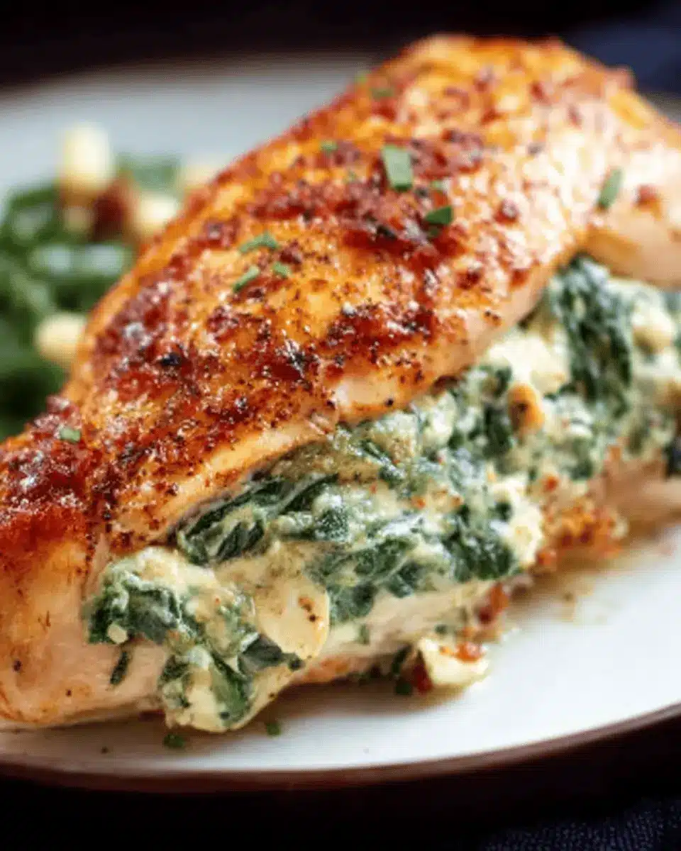 In summary, spinach stuffed chicken is a delightful dish that perfectly balances flavors and nutrition. Ideal for busy weeknights or a cozy dinner, this recipe is not only easy to prepare but also impressively satisfying. Enjoy the blend of creamy goodness and protein-packed chicken—your taste buds will thank you!