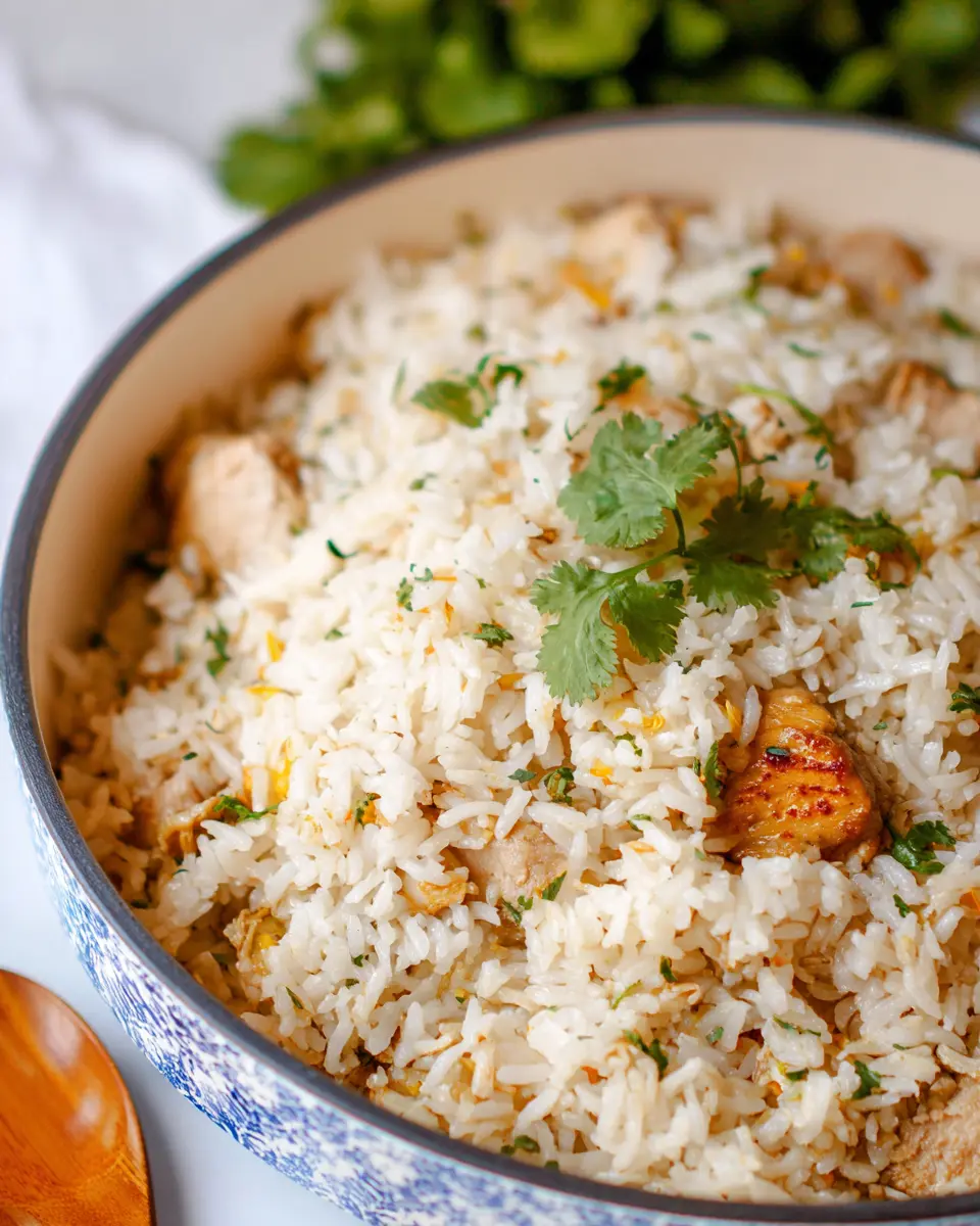 Additionally, this recipe is adaptable! Want to make it vegetarian? Substitute the chicken with tofu or your favorite veggies. Curious about spice levels? Toss in some chilies for a kick! You can dive deeper into the versatility of coconut rice in this helpful article.
