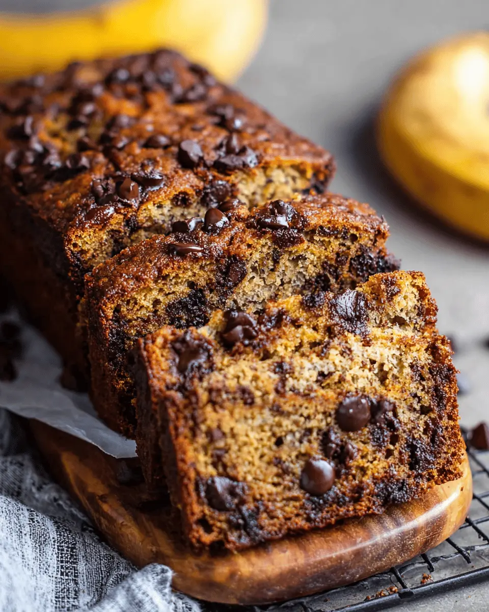 Now you’re ready to slice and enjoy your Super Moist Chocolate Chip Banana Bread! Whether for breakfast or a cozy snack, this treat is bound to become a favorite in your home. Happy baking!